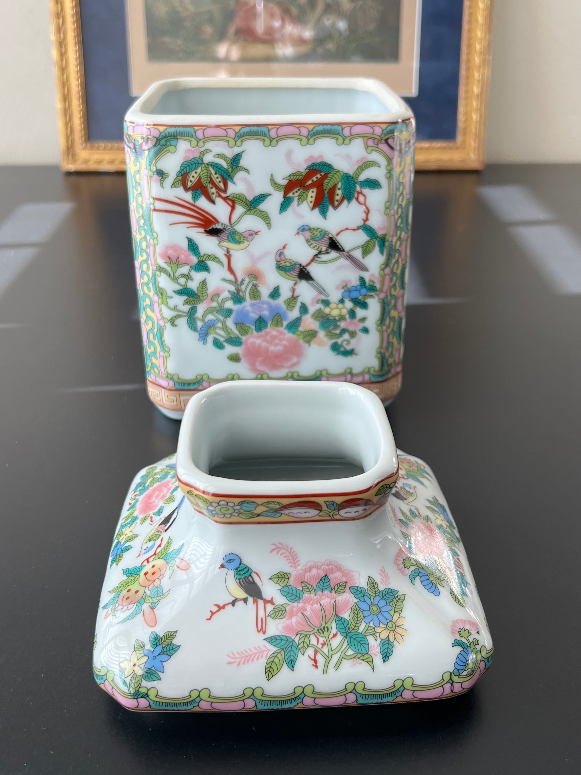 Rose Medallion Style Porcelain Tissue Box Cover - Chinoiserie Style